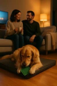 If you know evenings are hard, set your dog up before the storm hits. Use Place while you cook. Use a chew in a controlled space after dinner. Keep interactions calm. Reward stillness. You’re not “ignoring” your dog. You’re teaching them a life skill.