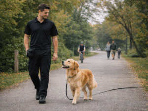 If you live in Hamilton, you’ve got everything you need to proof properly because the city offers every level of distraction imaginable. Start where you can win. That might be a quiet street in the early morning, or a calm park edge rather than the main path at peak time. Choose one behaviour per session, not five. If your dog is working on loose lead walking, make the goal “loose lead for short stretches” and reward that, rather than dragging your dog through a forty-minute walk hoping it magically improves. If your dog is working on recall, practise recalls on a long line in low distraction areas before you ever trust it in a high distraction place. If your dog is working on neutrality, practise calm observation at a distance from people and dogs, rewarding your dog for choosing to stay engaged with you instead of scanning for trouble or excitement. Build your training routes like a ladder. The route itself becomes part of the plan. Over time, you can proof the same skills on busier pavements, around schools at pick-up time, near trails with cyclists, and around parks with wildlife smells. This is how Hamilton dog training stops being a class you attended and becomes a skill you own. If you want a structured roadmap, K9 Principles lays this out step by step in training so you’re never guessing what “next” looks like. You can start here: https://k9principles.ca/ and if you want the foundations that make proofing easier, look at Level 1 and Level 2: https://k9principles.ca/programs-level-1/ and https://k9principles.ca/programs-level-2/