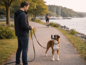Neighbourhood walks are underrated. A calm street in the evening can be the perfect place to rebuild your dog’s “listen first” habit before you ever head towards a high-distraction area. Driveways, lawns, and lampposts become controlled sniffing rewards. Intersections become check-in points. You build structure, then you bring that structure into harder places.