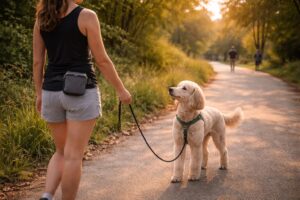Walks are a big part of this, but they should be structured, not chaotic. Early walks are not about distance or “getting energy out.” They’re about learning how to move through the world calmly with you. That might mean shorter walks with more pauses, more check-ins, and more reinforcement for loose leash and calm body language. When you treat the walk like a training session instead of a cardio session, you’re doing dog training without it feeling like homework.